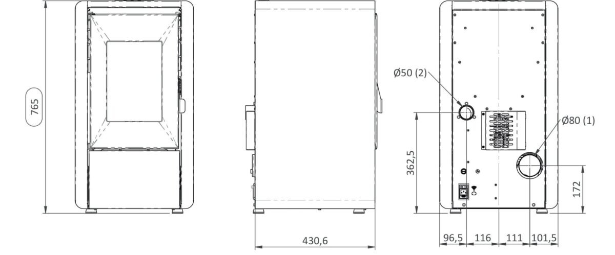 • Sobna peć na pelete za toplozračno grijanje upuhivanjem toplog zraka u prostor.