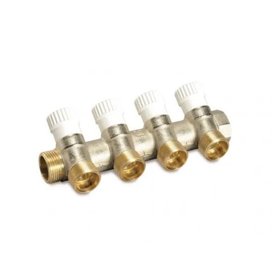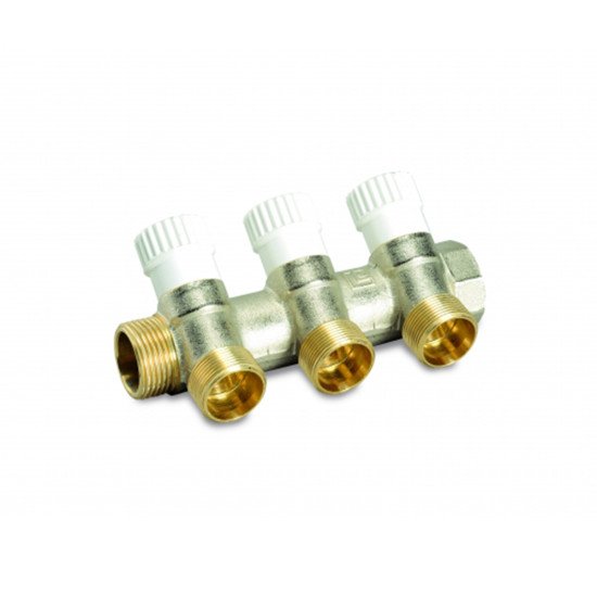 Višesmjerni jednostavni modularni razdjelnik sa shut-o! ventili. Priključak za bakrenu i plastičnu cijev G 3/4 EK. U skladu s D.M. 174/2004.